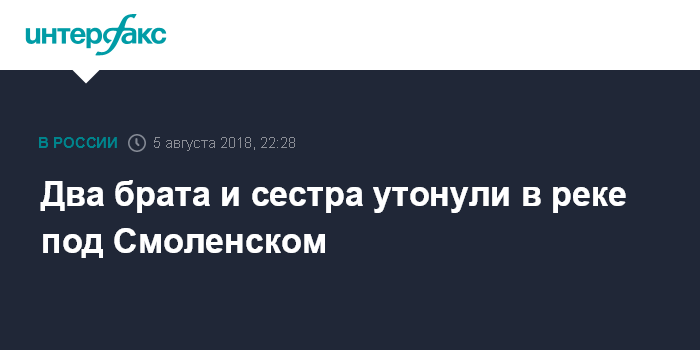 Москва. 5 августа. INTERFAX.RU - Трое детей утонули в реке Западная Двина в Смоленской области, сообщил "Интерфаксу" представитель ГУ МЧС по области.