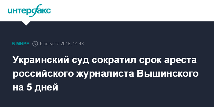 Украинский суд сократил срок ареста российского журналиста Вышинского на 5 дней