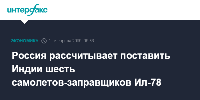 Россия рассчитывает поставить Индии шесть самолетов-заправщиков Ил-78