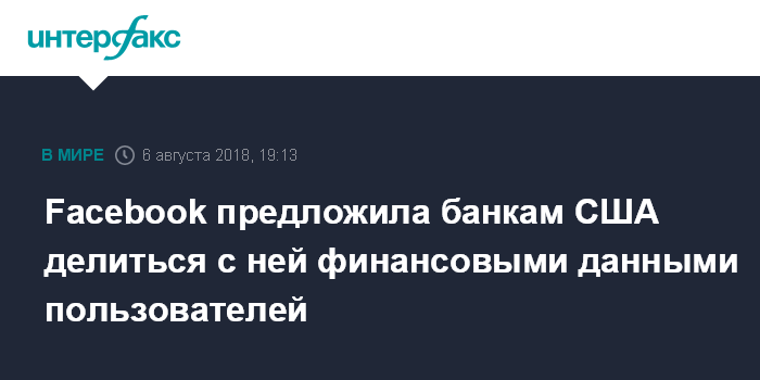 Facebook предложила банкам США делиться с ней финансовыми данными пользователей