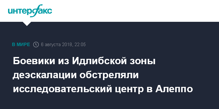 Боевики из Идлибской зоны деэскалации обстреляли исследовательский центр в Алеппо