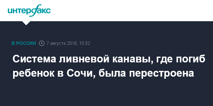 "Участок ливневой канализации в Сочи, в которую упал ребенок, был перестроен: желоб закрывался специальным щитом, но в день трагедии оказался открыт", - отметил сотрудник пресс-службы.