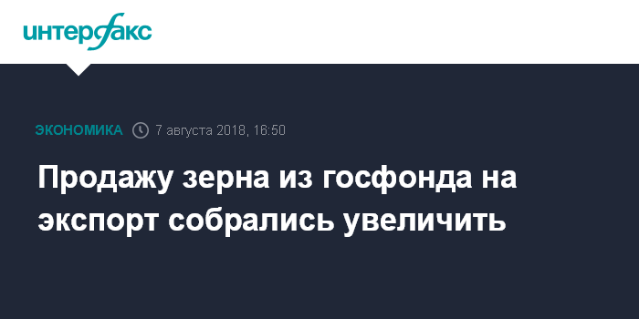 Москва. 7 августа. INTERFAX.RU - Правительство России может увеличить объем зерна из госфонда, предназначенного на экспорт.