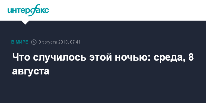 Москва. 8 августа. INTERFAX.RU - Краткая сводка событий, произошедших к утру: