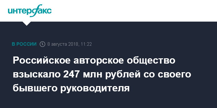 Российское авторское общество взыскало 247 млн рублей со своего бывшего руководителя