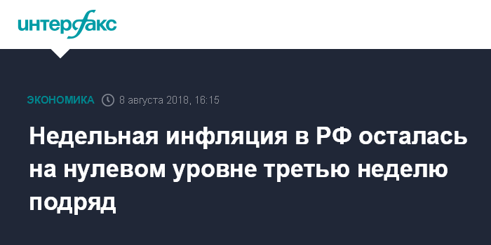 Предыдущие две недели инфляция также была нулевой, до этого цены выросли на 0,1%, а в начале июля росли по 0,2% две недели подряд (из-за индексации тарифов ЖКХ).