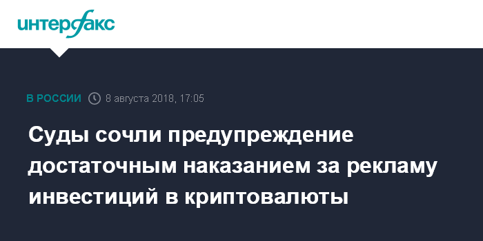 Суды сочли предупреждение достаточным наказанием за рекламу инвестиций в криптовалюты