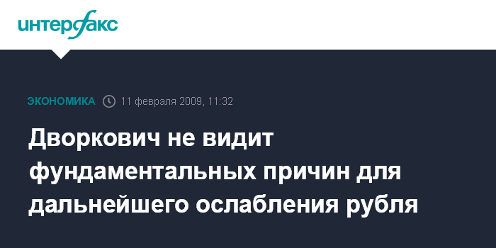 Москва. 11 февраля. INTERFAX.RU - Фундаментальных причин для дальнейшей девальвации рубля в настоящий момент нет, считает помощник президента РФ Аркадий Дворкович. "Нет никаких причин с фундаментальной точки зрения, чтобы дальше ослаблять рубль", - сказал он на конференции в Москве в среду.