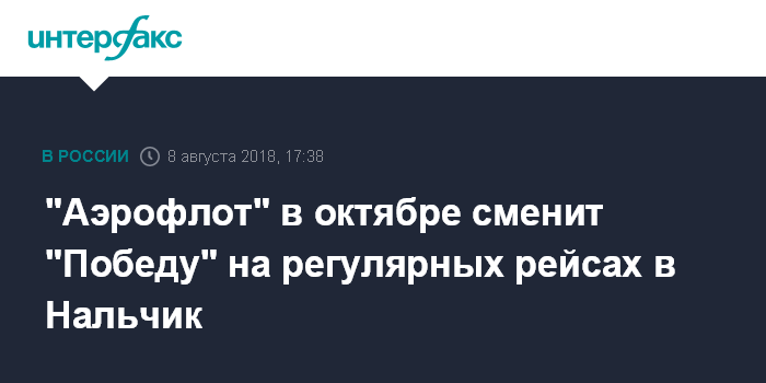 "Аэрофлот" в октябре сменит "Победу" на регулярных рейсах в Нальчик