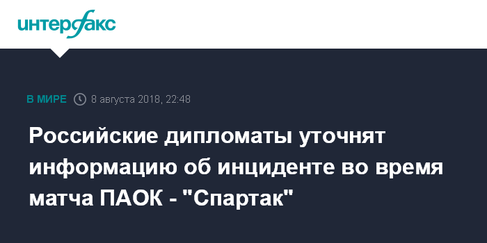 Российские дипломаты уточнят информацию об инциденте во время матча ПАОК - "Спартак"
