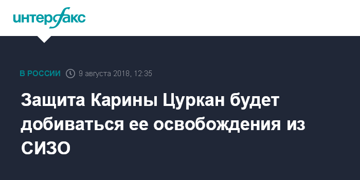 Москва. 9 августа. INTERFAX.RU - Защита бывшего члена правления компании "Интер РАО" Карины Цуркан, обвиняемой в шпионаже, будет добиваться ее освобождения из-под стражи, сообщил "Интерфаксу" руководитель объединения "Команды 29", адвокат Иван Павлов.