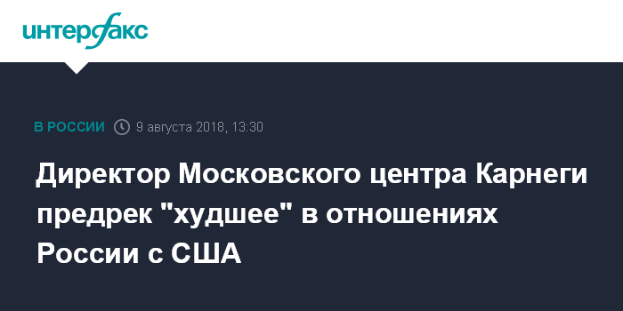 Москва. 9 августа. INTERFAX.RU - России следует готовиться к худшему в отношениях с Соединенными Штатами и давать отпор, где это возможно, считает директор Московского центра Карнеги Дмитрий Тренин.