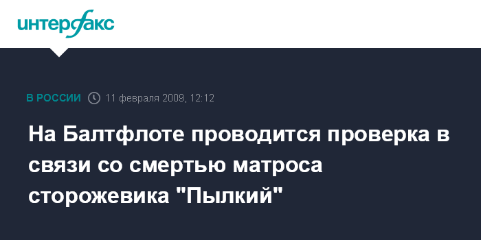 Москва. 11 февраля. INTERFAX.RU - Hа Балтийском флоте (БФ) сотрудники военно-следственного управления проводят доследственную проверку по факту смерти матроса из экипажа сторожевого корабля "Пылкий", сообщил "Интерфаксу" источник в штабе флота.