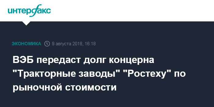 ВЭБ передаст долг концерна "Тракторные заводы" "Ростеху" по рыночной стоимости