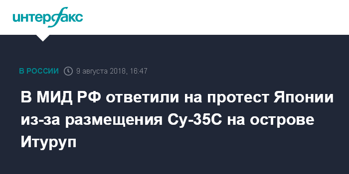Так она прокомментировала заявление японской стороны, что размещение Россией на острове Итуруп истребителей Су-35С идет вразрез с позицией Японии и вызывает у Токио глубочайшее сожаление.