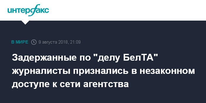 Москва. 9 августа. INTERFAX.RU - Задержанные по "делу БелТА" подтвердили факт незаконного доступа к информленте агентства, все они освобождены, сообщает следственный комитет Белоруссии.