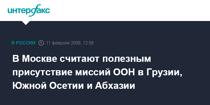 В Москве считают полезным присутствие миссий ООН в Грузии, Южной Осетии и Абхазии