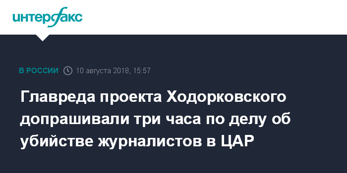 Главреда проекта Ходорковского допрашивали три часа по делу об убийстве журналистов в ЦАР