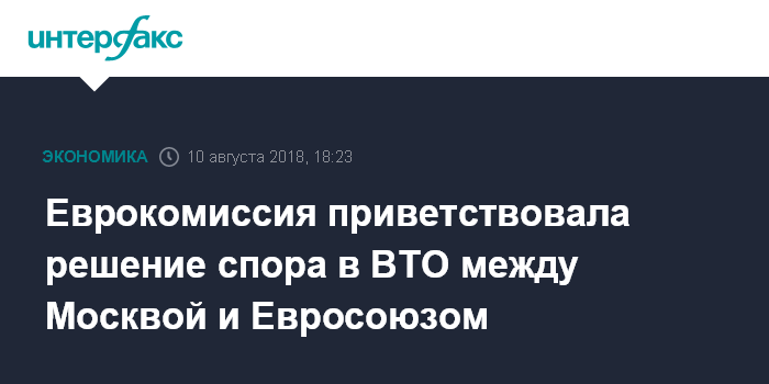Еврокомиссия приветствовала решение спора в ВТО между Москвой и Евросоюзом