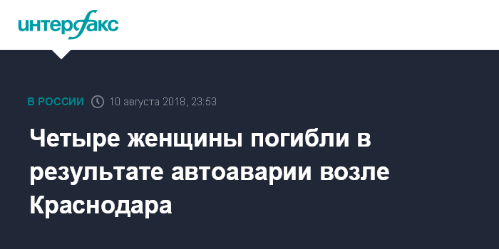 Четыре женщины погибли в результате автоаварии возле Краснодара