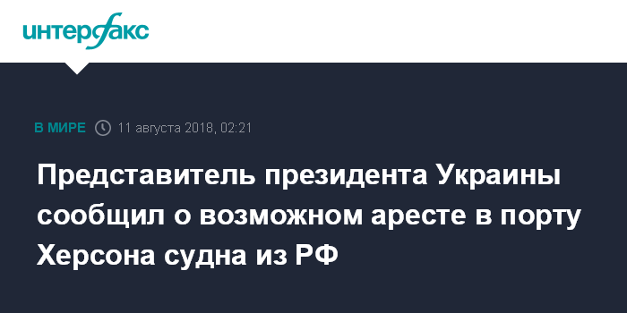 Представитель президента Украины сообщил о возможном аресте в порту Херсона судна из РФ