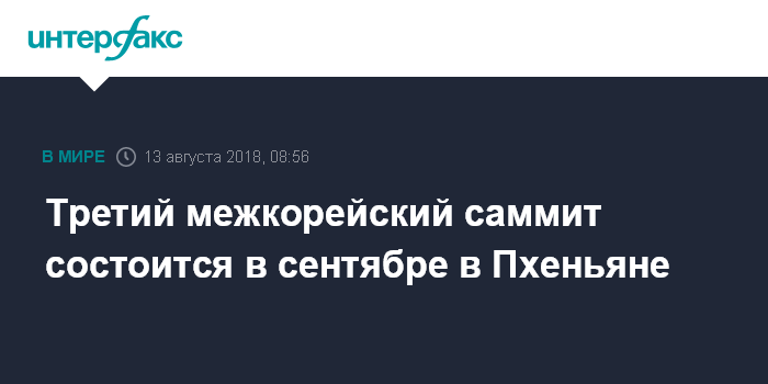 Москва. 13 августа. INTERFAX.RU - Третья в этом году встреча между руководителями двух корейских государств состоится в сентябре в столице КНДР, сообщило в понедельник агентство "Ренхап".