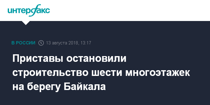 Москва. 13 августа. INTERFAX.RU - Судебные приставы приостановили строительство шести многоэтажек на побережье озера Байкал в поселке Листвянка Иркутской области, сообщили в понедельник в управлении ФССП по региону.