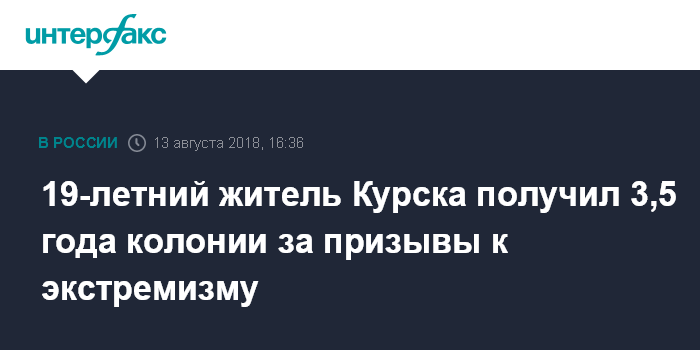 19-летний житель Курска получил 3,5 года колонии за призывы к экстремизму