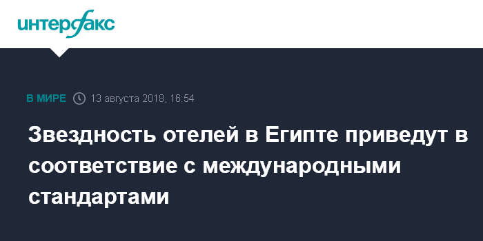 Москва. 13 августа. INTERFAX.RU - Звездность отелей в Египте будет пересмотрена согласно международным стандартам, сообщается на сайте Elbalad.news.