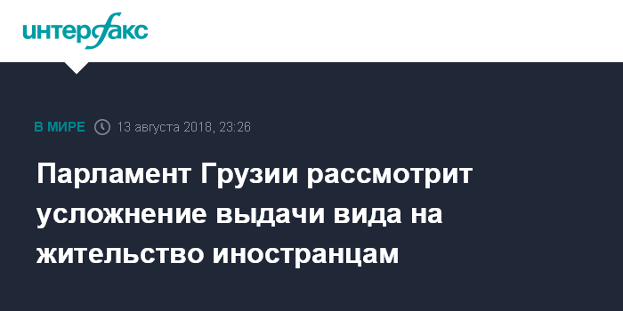 Москва. 13 августа. INTERFAX.RU - В парламент Грузии представлен законопроект, в соответствие с которым предусматривается внести изменения в закон "О правовом положении иностранцев и лиц без гражданства", усложняющие правила выдачи иностранцам вида на жительство на территории страны, сообщают в понедельник грузинские СМИ.