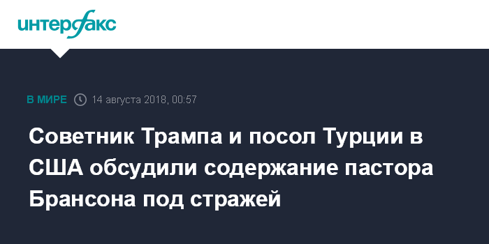 Советник Трампа и посол Турции в США обсудили содержание пастора Брансона под стражей