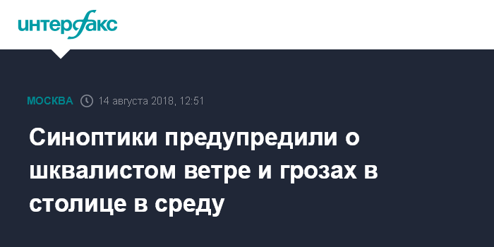 Москва. 14 августа. INTERFAX.RU - Жара, грозовые дожди и усиление ветра прогнозируются в Москве и области в среду, сообщили в Гидрометцентре России.