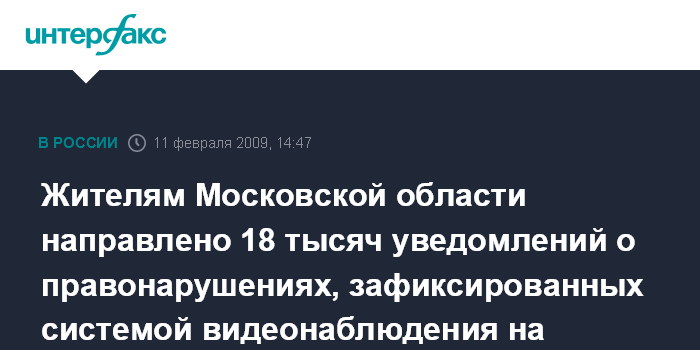 Москва. 11 февраля. INTERFAX.RU - Жителям Москвы и Московской области, а также других регионов России направлено около 18 тыс. уведомлений о правонарушениях, которые были зафиксированы системой фотовидеонаблюдения на дорогах Подмосковья, сообщил в среду журналистам начальник областного УГИБДД Сергей Сергеев.