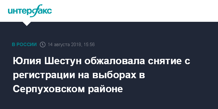Как сообщалось, территориальная избирательная комиссия (ТИК) приняла решение о регистрации Шестун в качестве кандидата на пост главы Серпуховского района 28 июля, 9 августа серпуховской городской снял ее с регистрации.