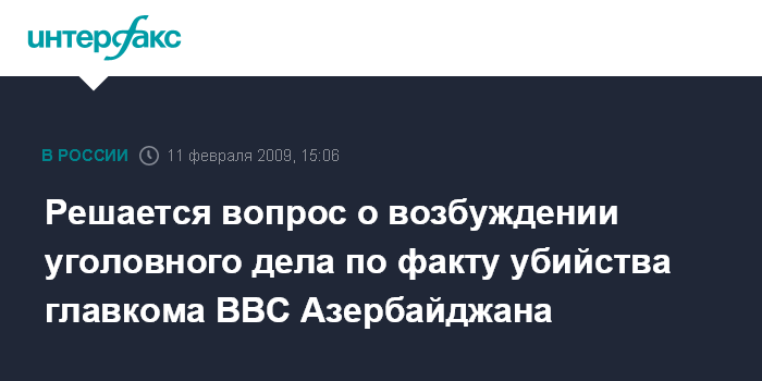 Решается вопрос о возбуждении уголовного дела по факту убийства главкома ВВС Азербайджана