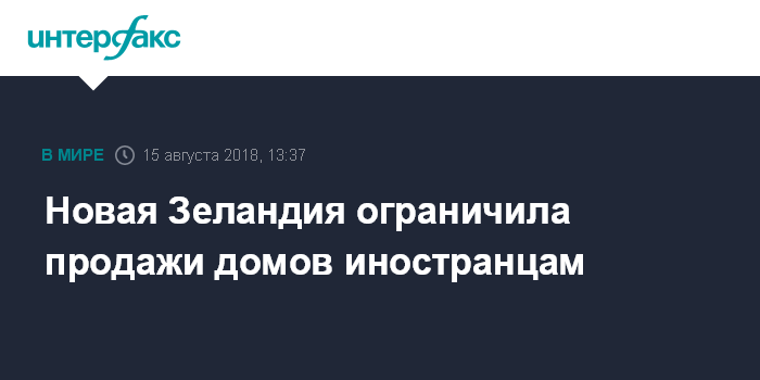 Москва. 15 августа. INTERFAX.RU - Парламент Новой Зеландии принял закон, ограничивающих продажи домов иностранным гражданам.