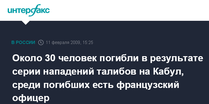 Москва. 11 февраля. INTERFAX.RU - Среди погибших в среду в результате серии терактов в Кабуле - один французский офицер, сообщило в коммюнике министерство обороны Франции.