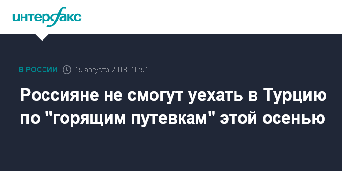 Россияне не смогут уехать в Турцию по "горящим путевкам" этой осенью