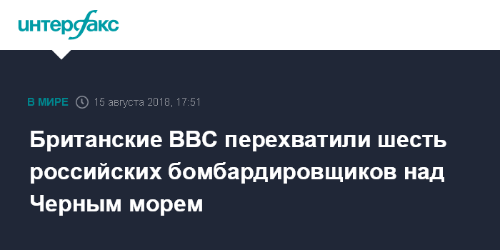 Москва. 15 августа. INTERFAX.RU - Королевские военно-воздушные силы Великобритании в среду сообщили о перехвате шести российских тактических бомбардировщиков Су-24 в небе над Черным морем вблизи границ НАТО.