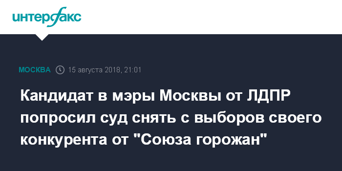 Кандидат в мэры Москвы от ЛДПР попросил суд снять с выборов своего конкурента от "Союза горожан"