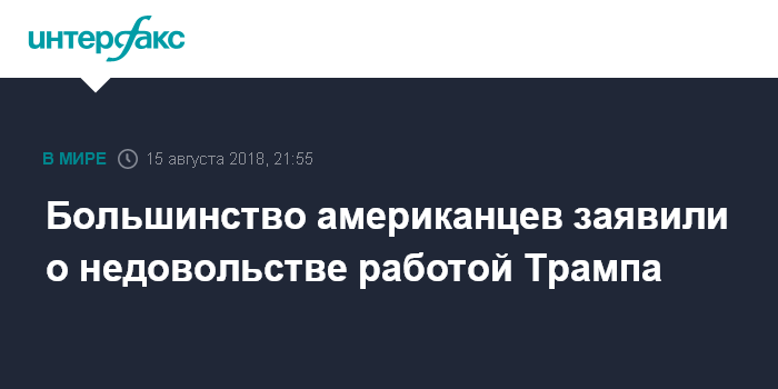 Москва. 15 августа. INTERFAX.RU - Более половины американцев не одобряют работу Дональда Трампа на посту президента США и нынешнюю политику Вашингтона в целом, показал опрос, результаты которого опубликованы в среду изданием Politico.