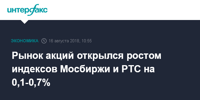 Москва. 16 августа. INTERFAX.RU - Рынок акций РФ открылся в четверг коррекционным ростом вместе с мировыми площадками после отката, поддержку рынкам оказывают надежды на урегулирование валютного кризиса в Турции и торгового противостояния США с Китаем; индексы МосБиржи и РТС за минуту торгов прибавили 0,1-0,7%, при этом локомотивом роста выступают бумаги Сбербанка.