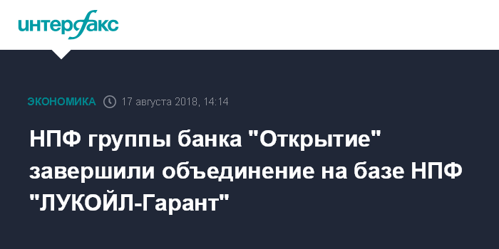 НПФ группы банка "Открытие" завершили объединение на базе НПФ "ЛУКОЙЛ-Гарант"