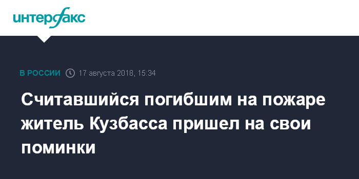 Считавшийся погибшим на пожаре житель Кузбасса пришел на свои поминки