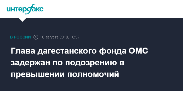 Глава дагестанского фонда ОМС задержан по подозрению в превышении полномочий