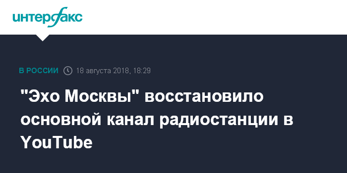 Москва. 18 августа. INTERFAX.RU - Основной канал "Эхо Москвы" в YouTube восстановил свою работу, сообщил журналист и ведущий радиостанции Александр Плющев.