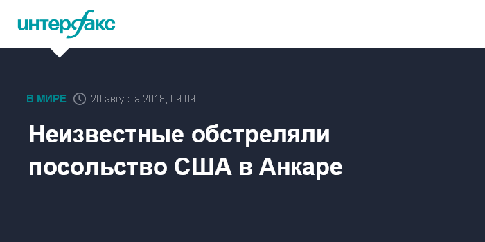 Москва. 20 августа. INTERFAX.RU -Неизвестные обстреляли в понедельник посольство США в Турции, сообщил телеканал CNN Turk.
