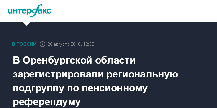 Москва. 20 августа. INTERFAX.RU - Избирательная комиссия Оренбургской области зарегистрировала региональную подгруппу инициативной группы по проведению пенсионного референдума.