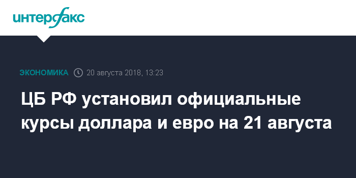 ЦБ РФ установил официальные курсы доллара и евро на 21 августа