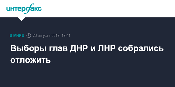 Москва. 20 августа. INTERFAX.RU - Выборы глав самопровозглашенных Донецкой и Луганской народных республик, намеченные на ноябрь нынешнего года, могут перенести на 2019 год.